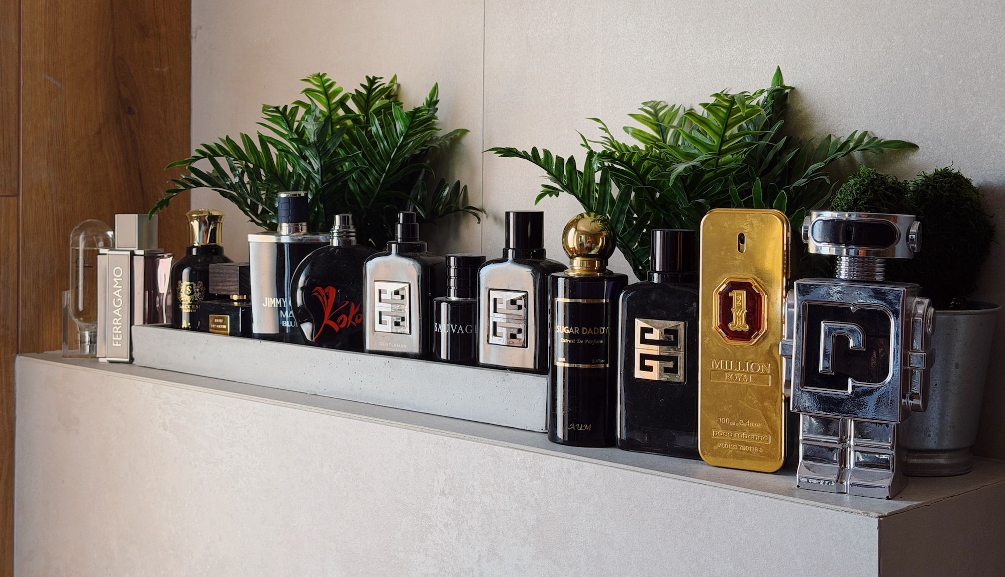 Acum, referitor la ce parfumuri bărbați am în dotare, cele 5 care sunt folosite cel mai des sunt Paco Rabanne: 1 Million Royal (cred că folosesc variante diferite de 1 Million de mai bine de 10 ani), Paco Rabanne Phantom, GIVENCHY Gentleman Society clasic, Extrême și Ambrée, iar preferatul #1 este AUM Sugar Daddy.