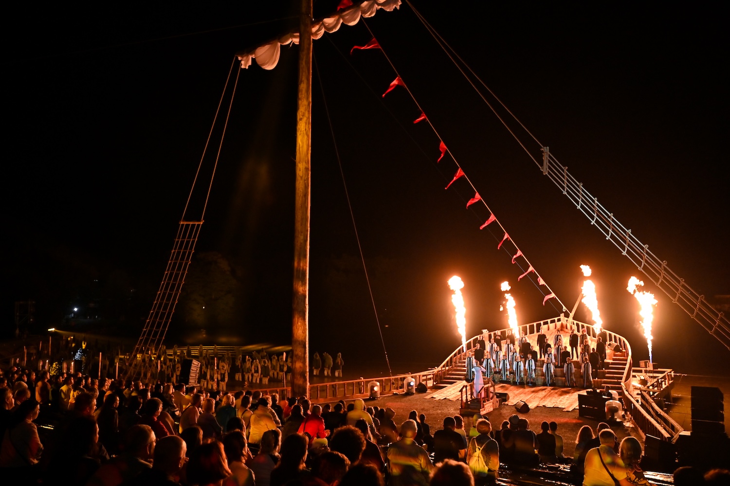Desfășurarea de forțe este cu totul și cu totul la alt nivel. Nu știu câți actori și figuranți joacă în acest spectacol, dar am avut senzația că sunt sute. Poate sunt zeci, nu știu, dar impresia este că sunt sute. Muzica este spectaculoasă, intensifică fiecare trăire, iar faptul că la un moment dat intri în spectacol, devii fizic parte din poveste este… nu o să zic nici “cireașa de pe tort”, nici “bomboana de pe colivă”… o să zic: acel ultim “Dumnezeu să-l ierte!” de la înmormântare.