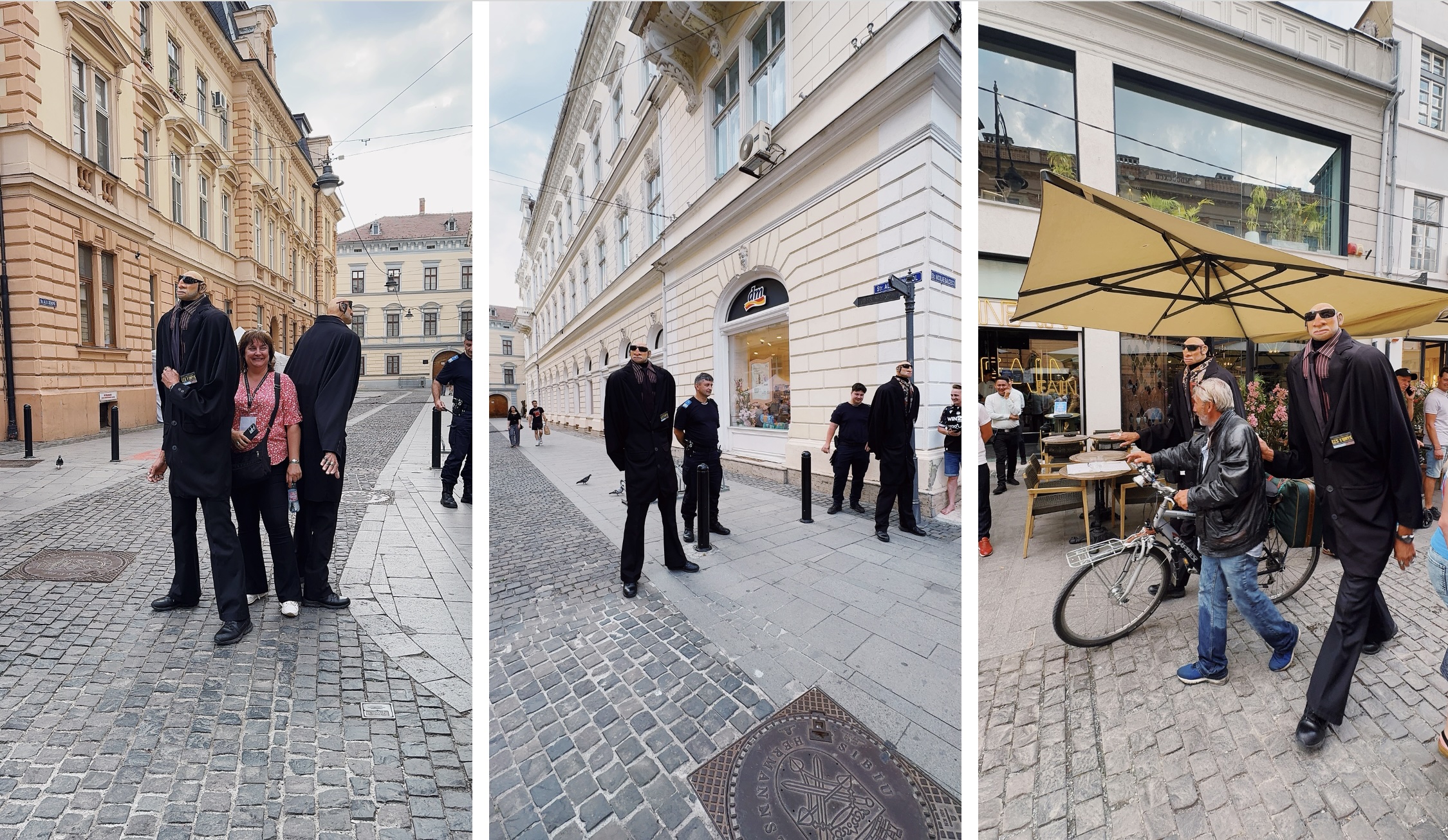 Pe pietonală am avut ocazia să văd Bodyguarzii, doi băieți care protejau random oamenii de pe stradă, activitate care genera o comedie mută extrem de naturală. Momentul de aur a fost când au protejat doi jandarmi. Impecabili!